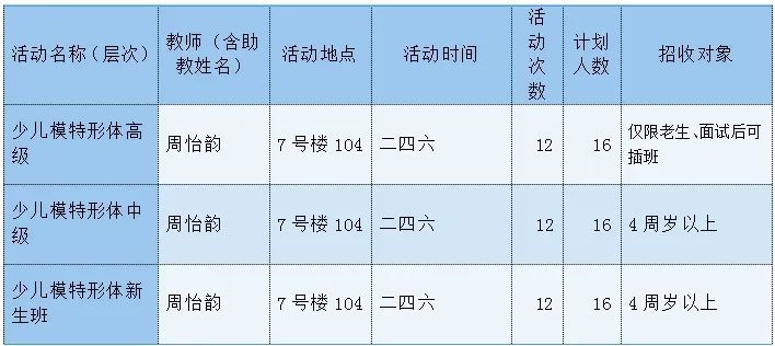 模特仪态训练:通过专业练习,塑造出挺拔的站姿、坐姿、走姿,让孩子养成一个良好的形体习惯,参与课外秀场等活动让孩子增加社会经历,开拓眼界,通过外在表现、内外提升、社会美育经历与老师的引导提升孩子的气质,建立孩子自信心,提高审美,增强孩子的从容性,在人生道路上或许会有困难,但依然内心强大,从容不迫。这就是一个好的结果!