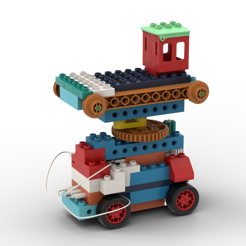 专为幼儿段孩子打造。孩子用大颗粒积木搭出小车、城堡,再配上编程指令,小车就能跑,城堡里的小机关也能运作,是不是超神奇?