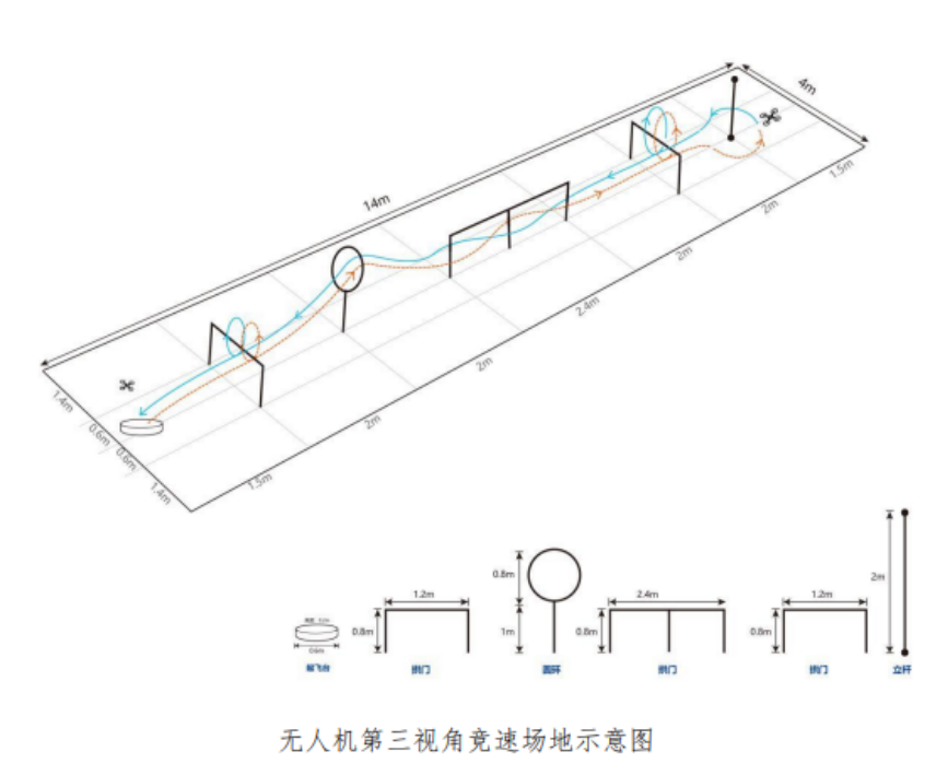 选手以第三视角目视的方式,使用无线电遥控设备操纵无人机飞越障碍,记录完成规定路线飞行任务所用时间的比赛,并根据完成路线的总用时评定成绩。