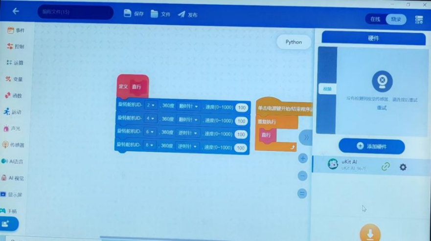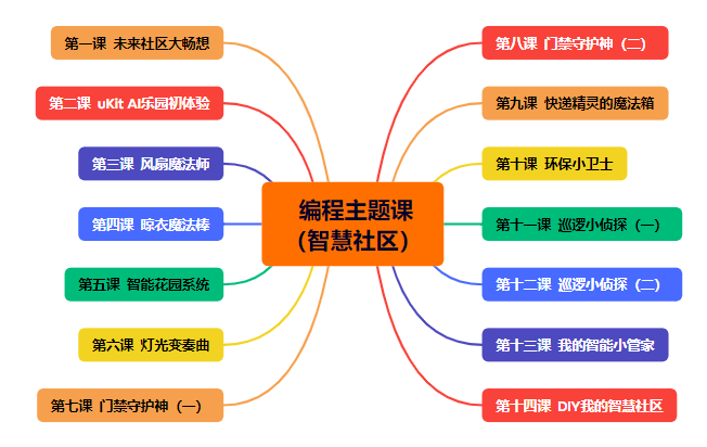 课程从“畅想未来社区”开始,引导同学们绘制自己心目中智慧社区的样子,激发大家的想象力和创新意识。结合“uKit Al”线上图形化编程平台和线下机器人搭建活动,让大家更直观地看到编程成果,体验人工智能编程学习的乐趣和成就感。