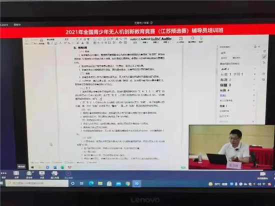 9月23日,2021年全国青少年无人机创新教育竞赛活动(江苏预选赛)辅导员培训班在无锡市少年宫举行。江苏省航空运动协会常务副会长吕卫东、江苏省青少年科技中心主任龚一钦、江苏省航空运动协会秘书长陈春宁、江苏省青少年科技教育协会副理事长、秘书长吉春鹏、全国青少年无人机创新教育竞赛活动总裁长董洪锋、无锡市少年宫负责人李晓红出席线上开班仪式。