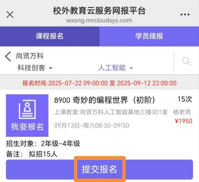 点击感兴趣的课程,查看具体要求,如需报名点“提交报名”,然后按提示进行支付操作。