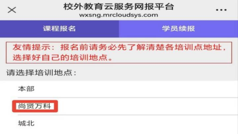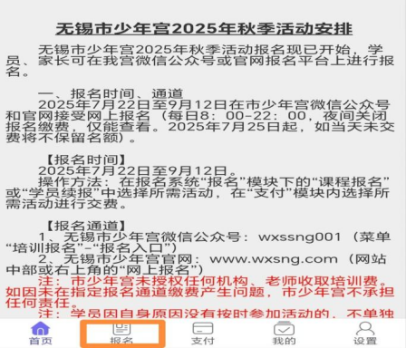 打开链接后,阅读报名系统首页的“公告、须知”,然后点击底部菜单“报名”。