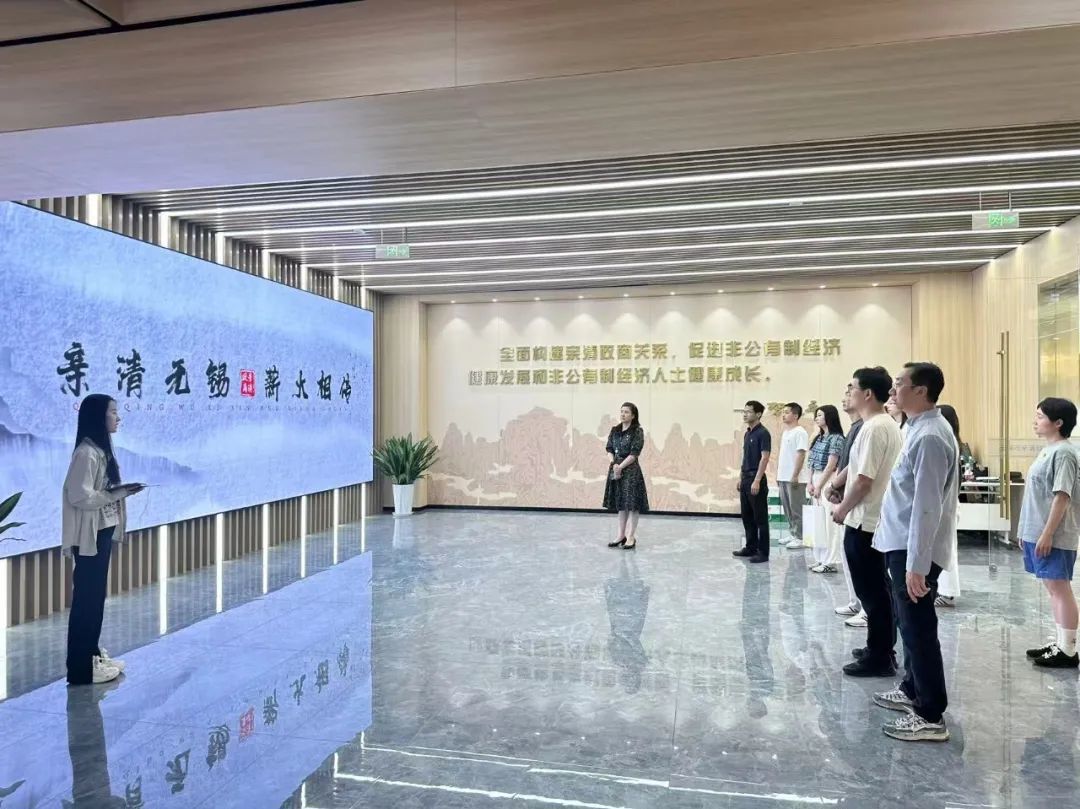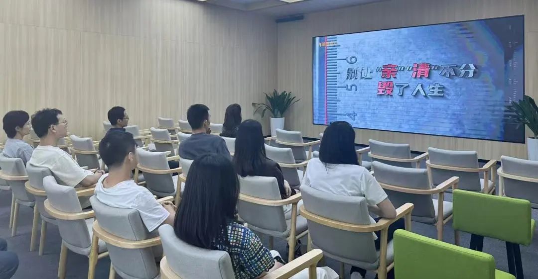 5月29日,全体党员前往无锡市亲清政商廉洁教育基地参观学习。该基地以“构建亲清政商关系、打造最优营商环境”为主题,设有“工商摇篮 筚路蓝缕”“春雷乍响 实业兴邦”“亲清政商 惠企赋能”“铁纪护航 警钟长鸣”四大主题展区。在工作人员以及数字人的讲解下,党员们回顾了无锡民族工商业的艰辛发展历程,了解了政企共谋发展的生动故事,并通过互动视频沉浸式体验了“诱惑就在身边、违纪就在瞬间”的廉政小故事,感受失足之痛、堕落之恨、贪欲之害。最后,大家在思廉厅集中观看专题片《界限》,接受了一次全面深刻的政治教育、思想淬炼和精神洗礼。