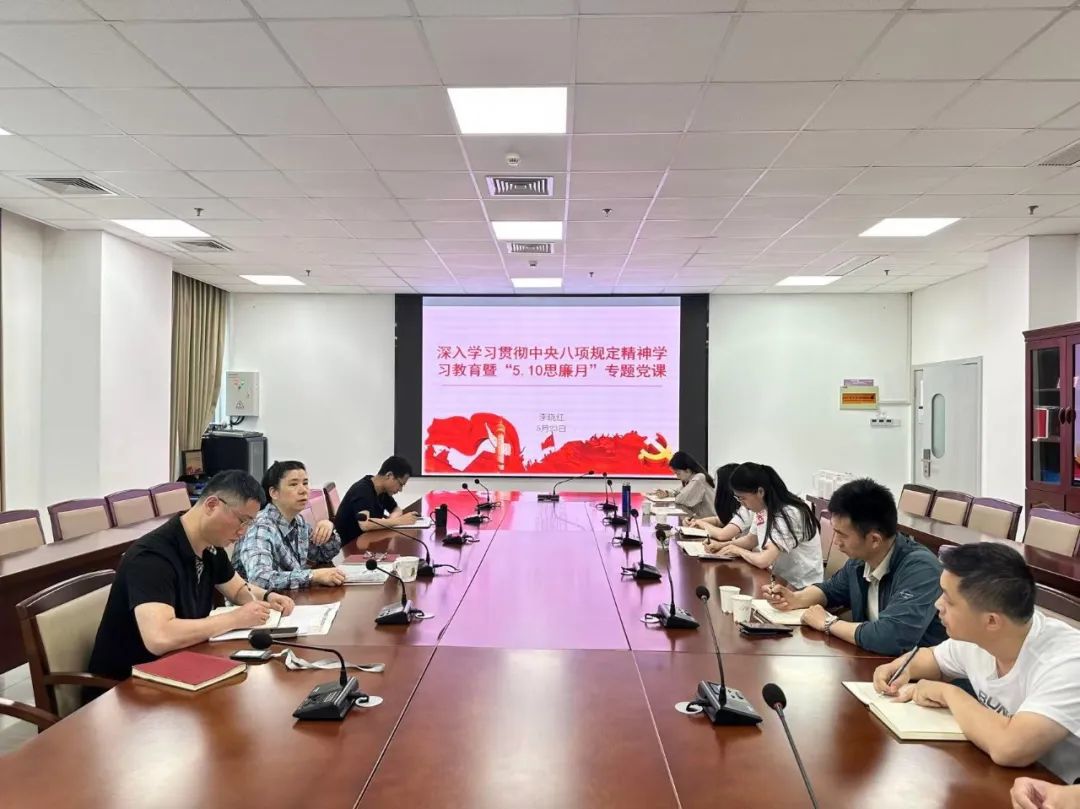 5月23日,宫党支部召开专题学习会。党支部书记李晓红同志领学新修订的《党政机关厉行节约反对浪费条例》,要求全体党员深刻领悟《条例》精神实质,将厉行节约、反对浪费内化于心、外化于行。随后,李书记以《锲而不舍落实中央八项规定精神,以优良党风引领社会新风尚》为题讲授专题党课,强调作风建设永远在路上。支部纪检委员毛少昊同志在会上通报了违反中央八项规定精神的典型案例,以“身边事”教育“身边人”,警示全体党员深刻汲取教训,切实引以为戒。并在28日教工大会上对端午假期廉洁纪律作出专项部署。