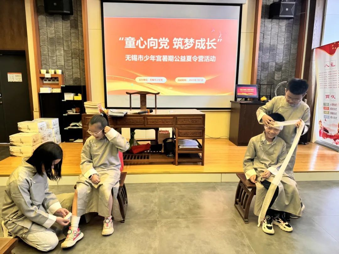 盛夏时节,党旗飘扬。在中国共产党成立 104 周年之际,无锡市少年宫“童心向党,逐梦成长” 红色夏令营于7月1日圆满举办。活动以红军故事会、沉浸式剧本杀、趣味红色运动会为核心,带领少年儿童在多元体验中触摸革命历史,以沉浸式红色教育向党的生日献上特殊礼赞。