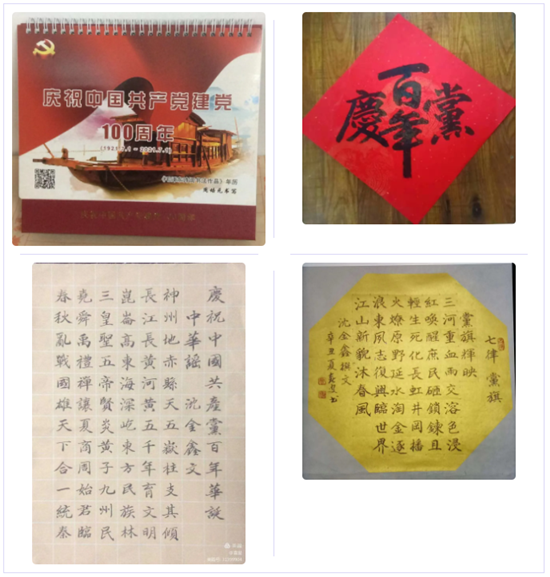 在中国共产党成立100周年之际,市少年宫周培元老书记用书法创作送上贺礼。他抄写入党誓词、百首诗词、红色经典歌谣等多幅作品,并将毛泽东诗词书法作品制成党史年历。一列列洒脱优美的楷书,笔锋苍劲有力,让人善心悦目。老书记以笔为媒,深切抒发爱党爱国情怀,以墨为介,将真挚热情挥洒在方寸之中,用拳拳赤字之心喜贺建党百年。